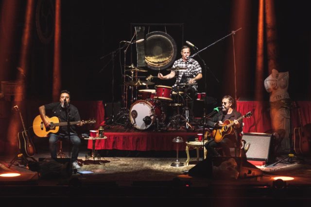 En punto de las 21:10 horas, la banda saltó a un escenario ambientado al estilo del Unplugged que hicieron para MTV y de inmediato los primeros acordes de «Here We Kum» comenzaron a sonar. «Amateur», «Noko» y «Chinga tu Madre” fueron las primeras canciones de un concierto que iba a durar casi las dos horas.